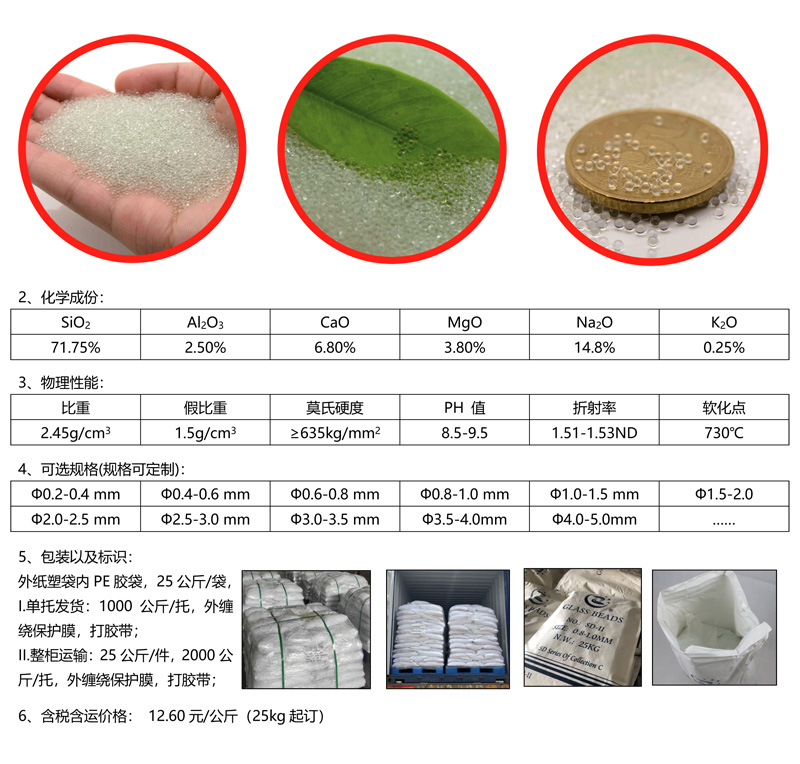 ? 優勢:研磨玻璃珠的球形結構使其在研磨過程中實現滾動摩擦,避免尖銳顆粒導致的劃痕或局部過度磨損,從而獲得更均勻的表面處理效果。